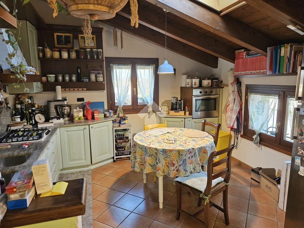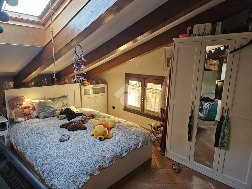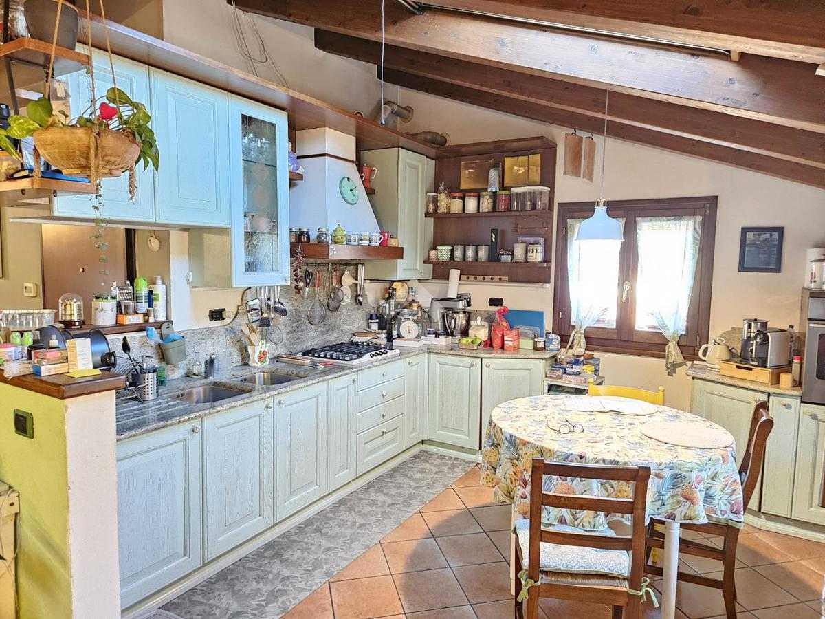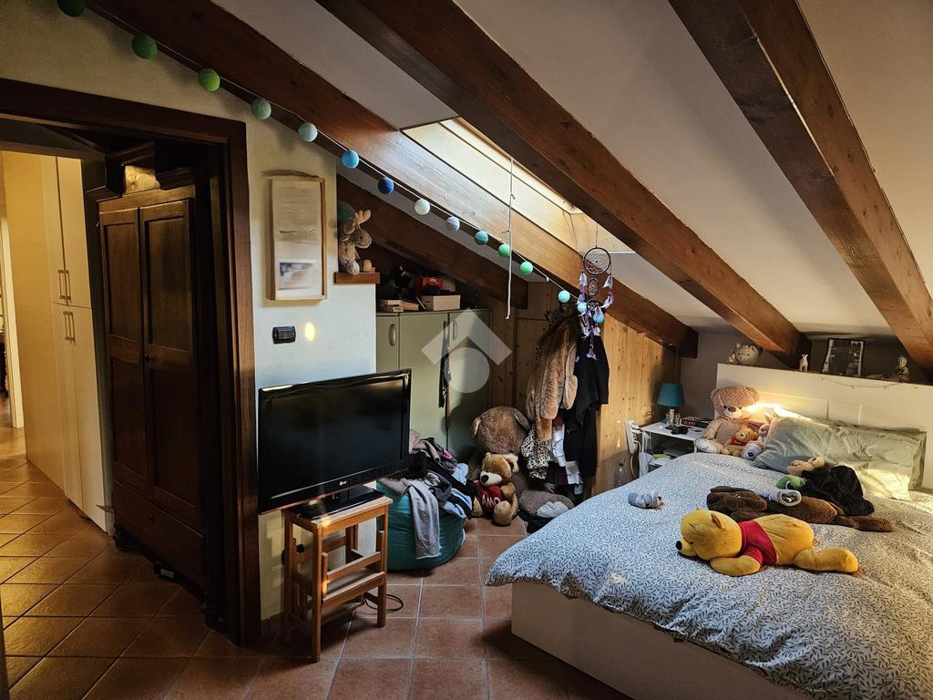 l'appartamento sottotetto, si compone di una zona giorno con zona cucina a vista , alte 3 camerette e un bagno lavanderia. le 2 unità sono collegate da una scala interna.