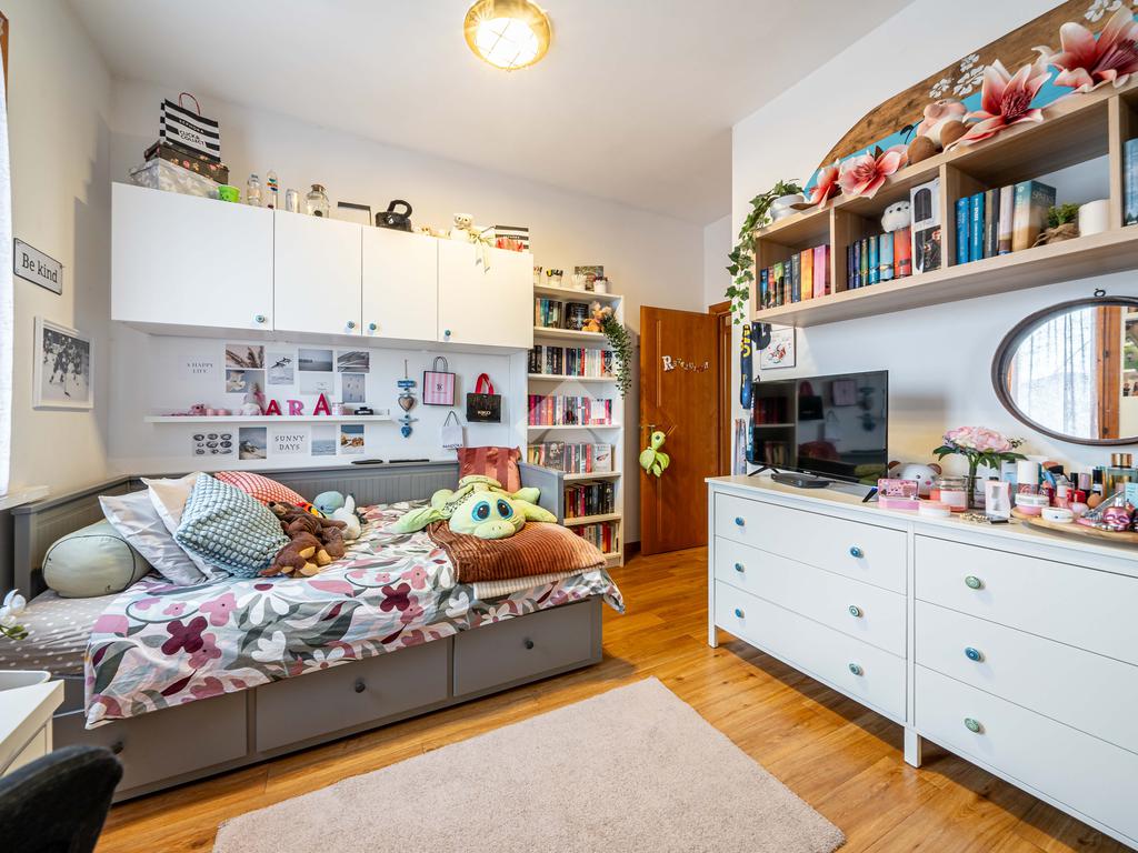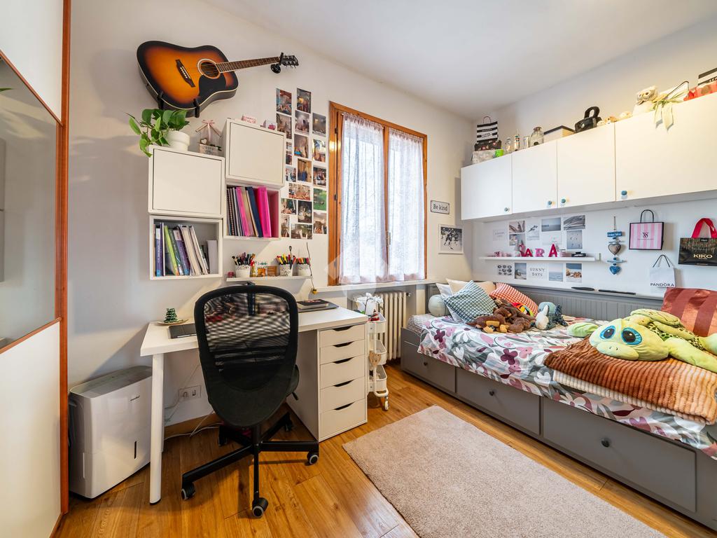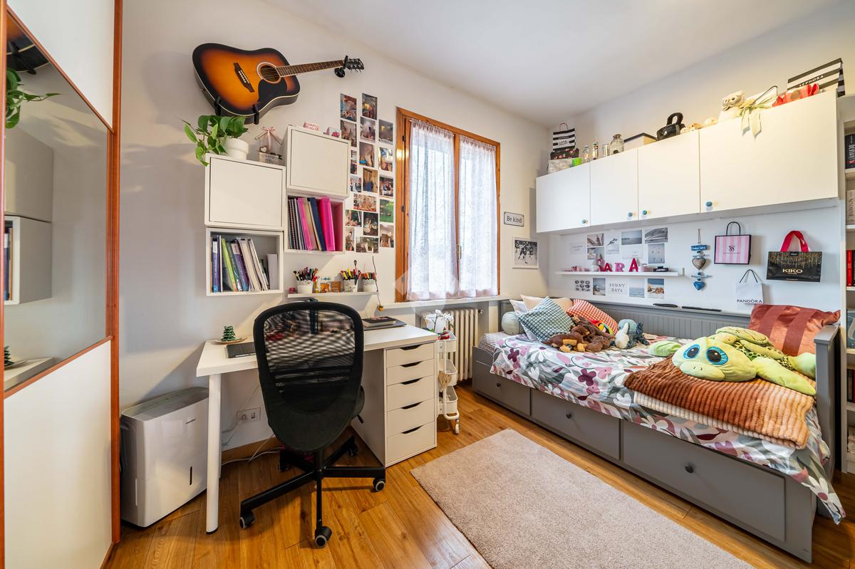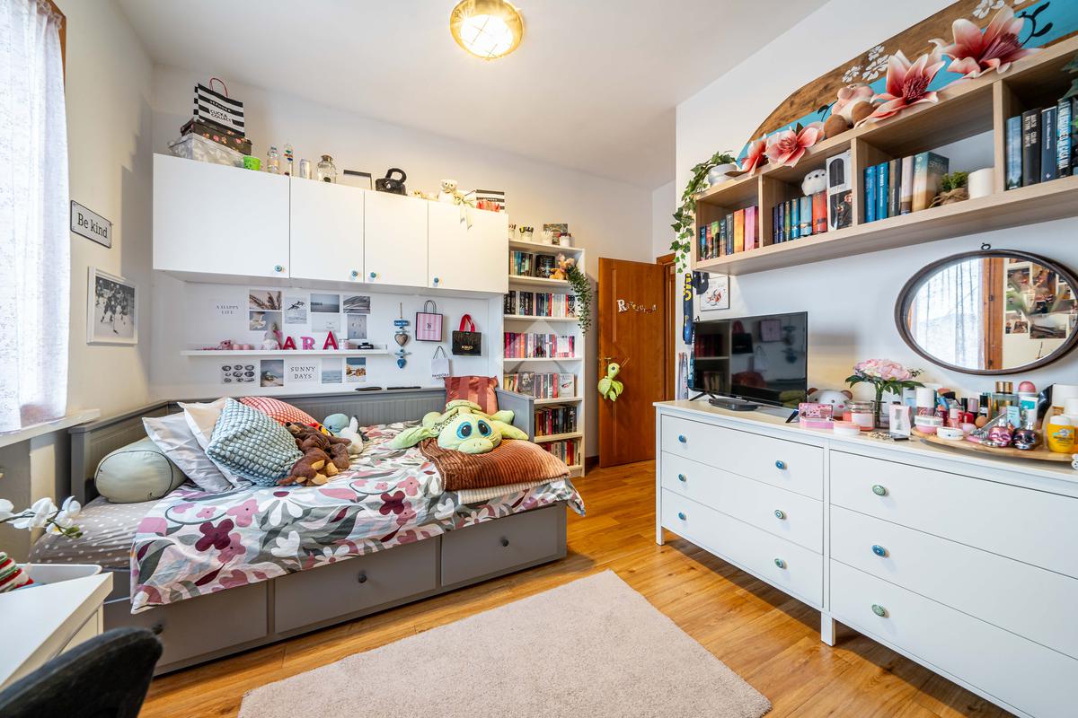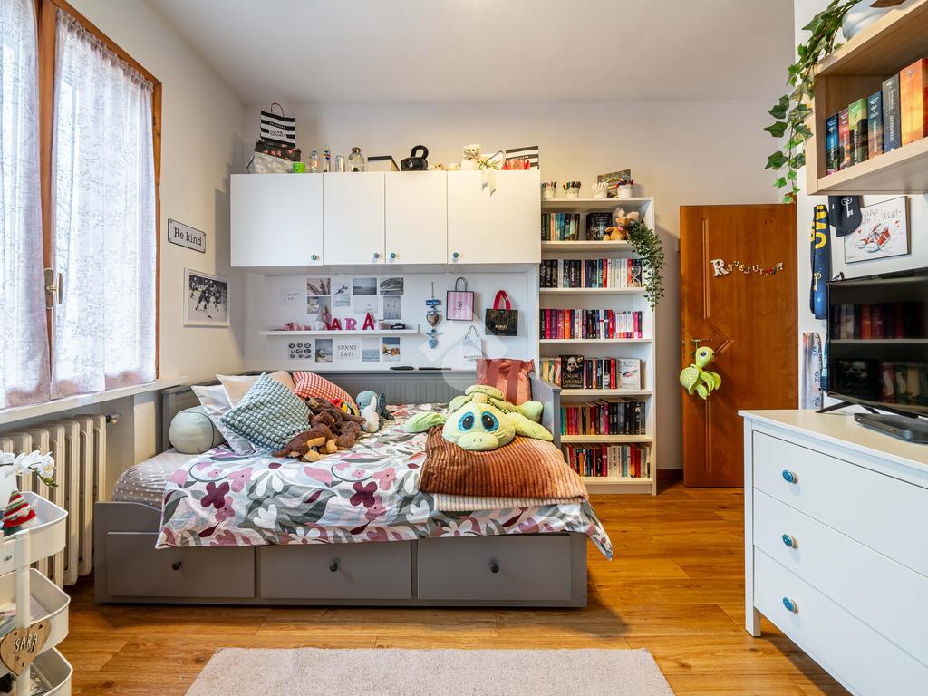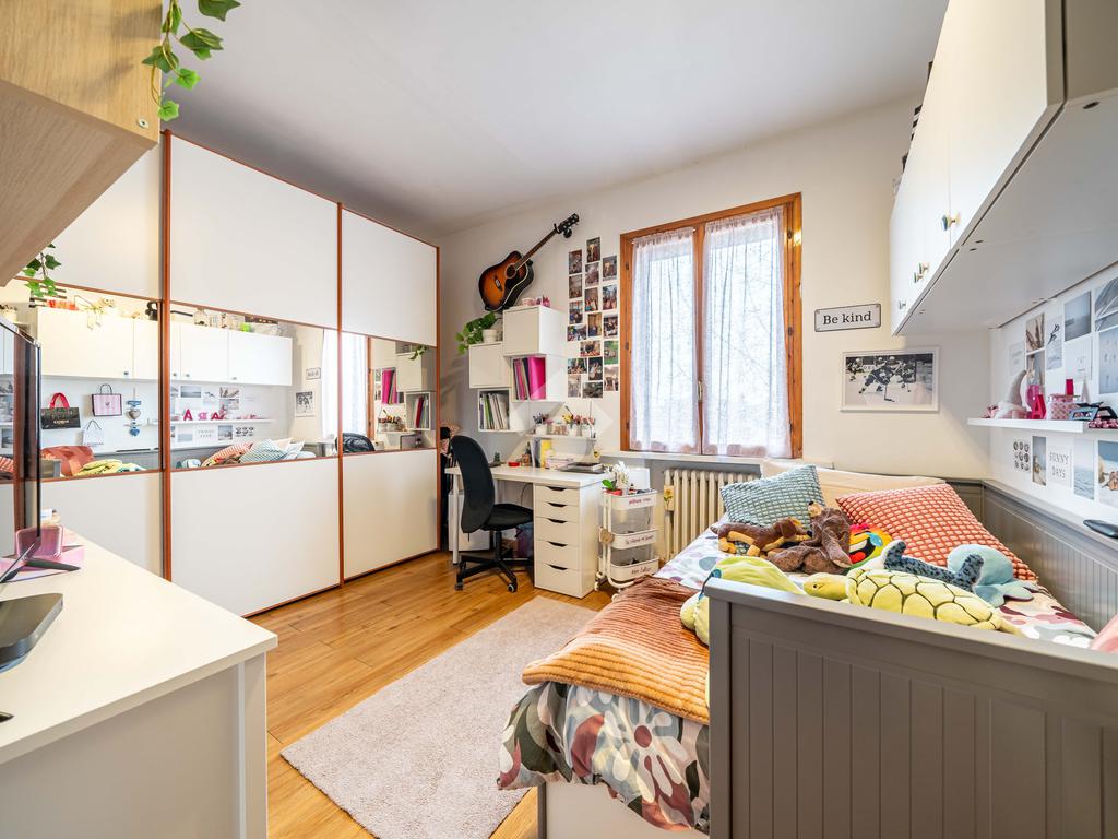 La proprietà si trova al secondo piano di una casa singola bifamiliare e si compone di quattro locali, ideali per accogliere una famiglia o per chiunque desideri ambienti ben distribuiti e versatili.