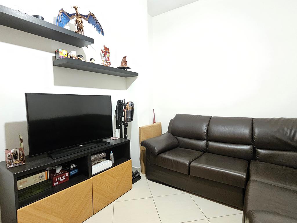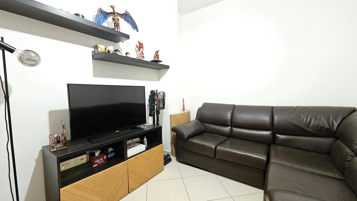 L'ingresso si apre su un luminoso soggiorno con cucina open space, ideale per momenti di relax e convivialità, da cui è raggiungibile un balcone.
