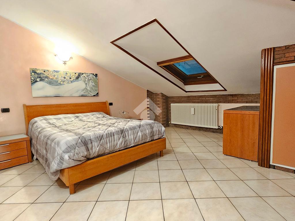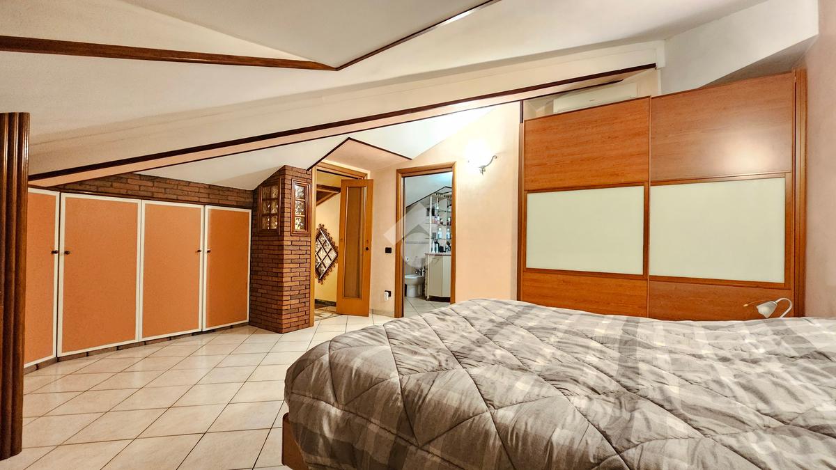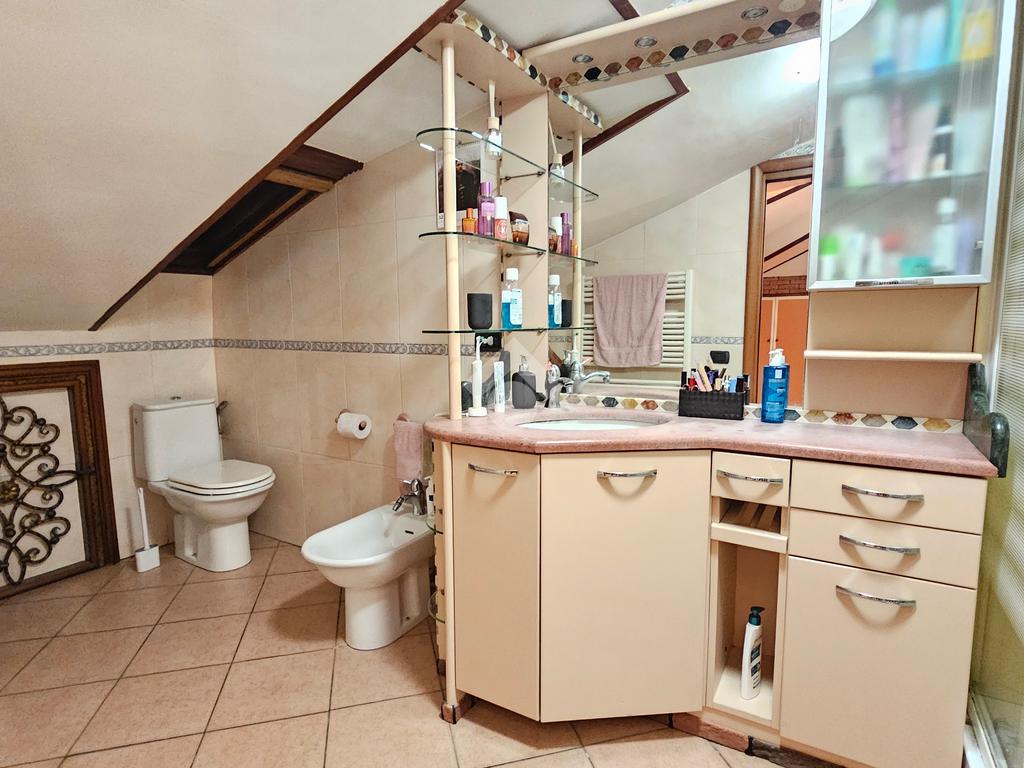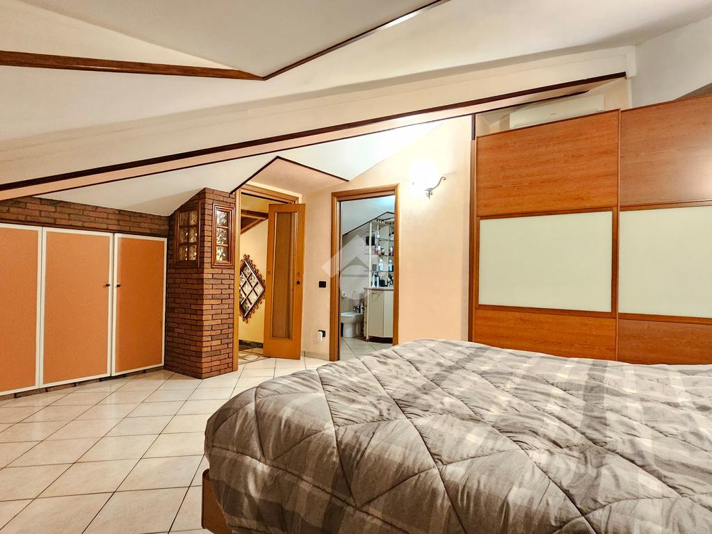 Salendo al piano mansardato tramite una scala in muratura troviamo un'accogliente camera matrimoniale e un'ulteriore bagno, che garantisce comfort e privacy. Sono inoltre presenti delle nicchie ideali come ripostigli.