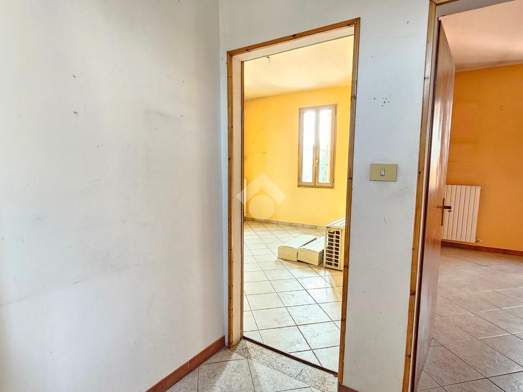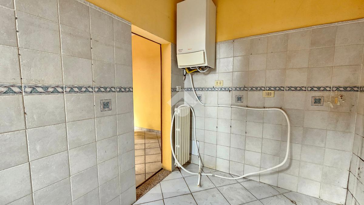L’abitazione si apre su un corridoio d'ingresso che divide bene i vari ambienti. La zona giorno è composta da una sala luminosa e da una cucina separata, una disposizione pratica che permette di tenere ben distinti gli spazi della casa. La zona notte comprende una camera da letto matrimoniale di dimensioni standard e un bagno finestrato. Grazie all'esposizione su due lati, l'appartamento risulta ben arieggiato e luminoso.