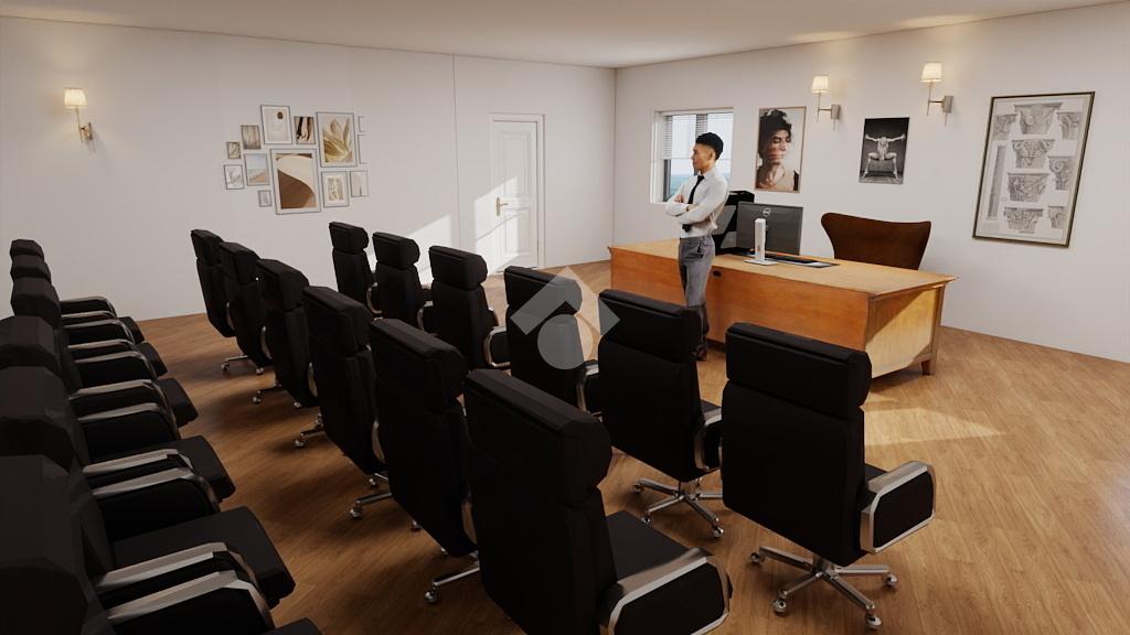 Piano primo: ufficio composto da disimpegno, tre locali dalle generose metrature, e uno spazio da adibire a cucina. Tali locali possono essere trasformati in civile abitazione.