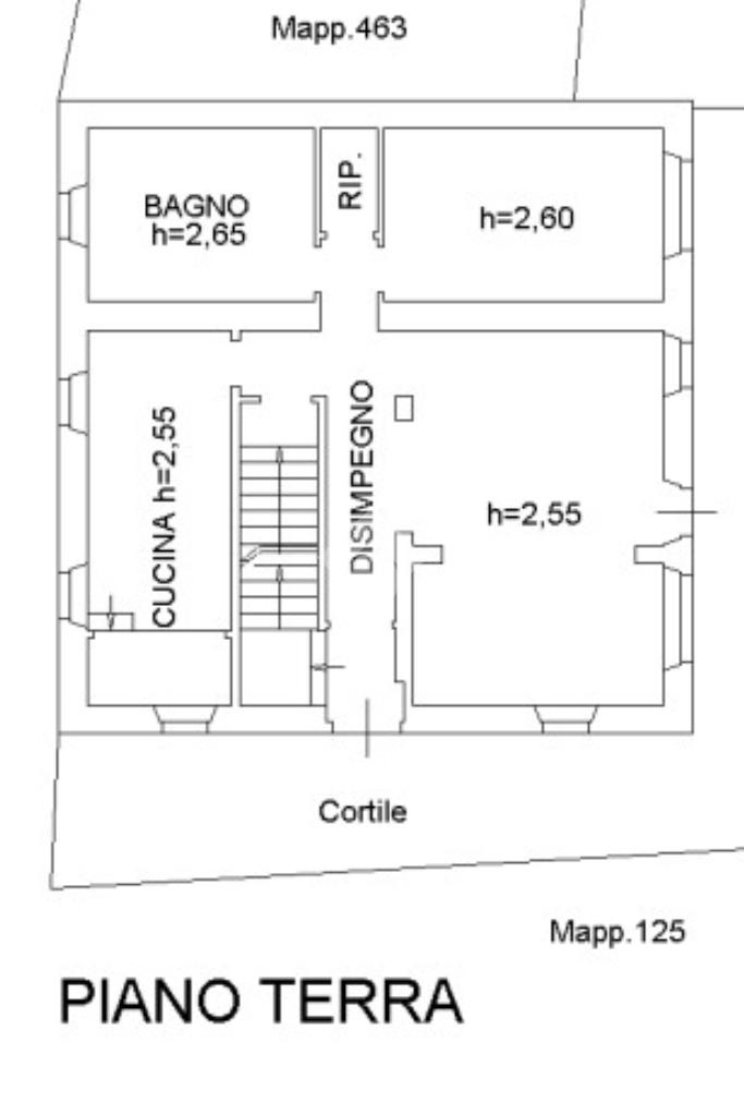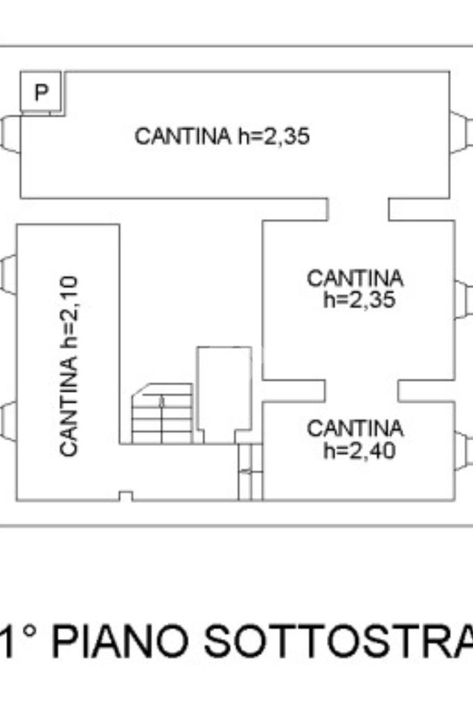 -PIANO INTERRATO (cantine): Dal piano terra, internamente all'appartamento, vi è la scala in muratura che scende in 4 ampi locali cantina, lasciati allo stato grezzo, con bocche di lupe che graantiscono un minimo di luce e aria agli spazi.