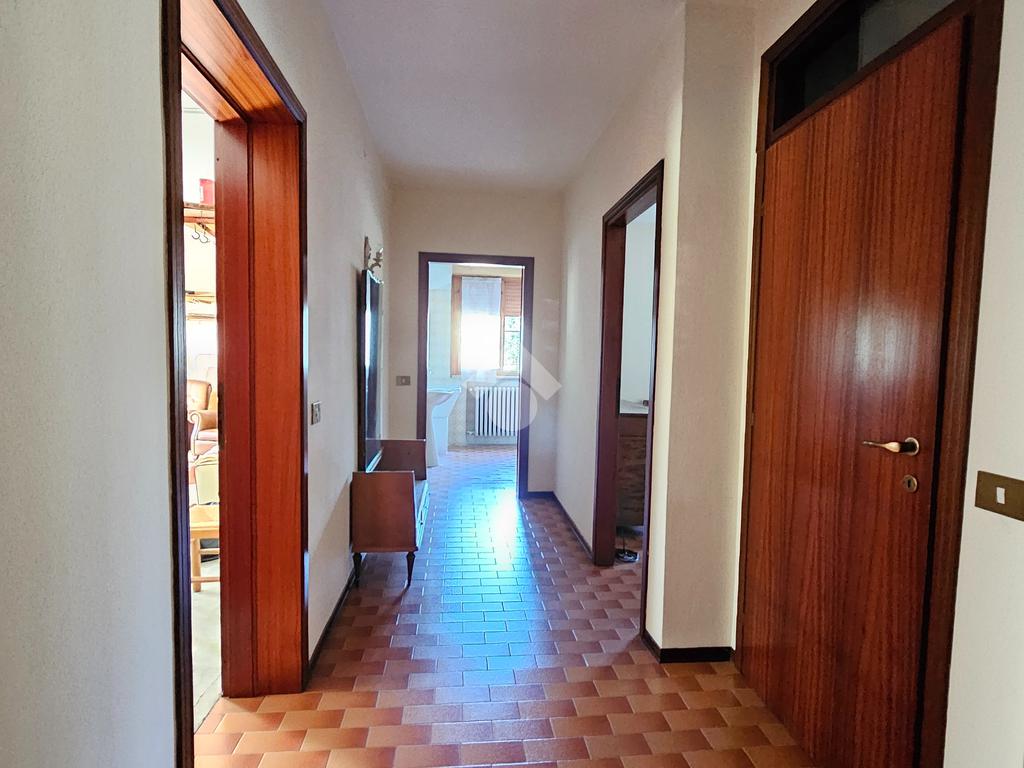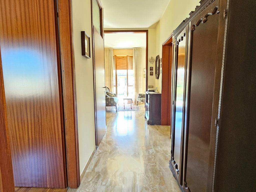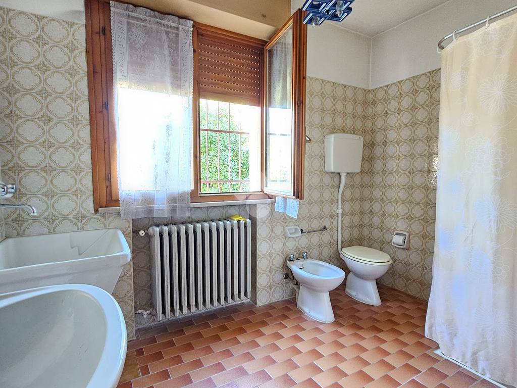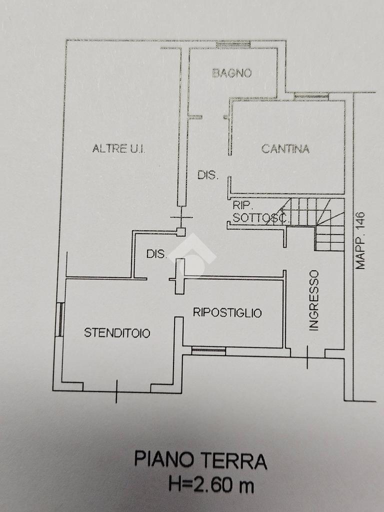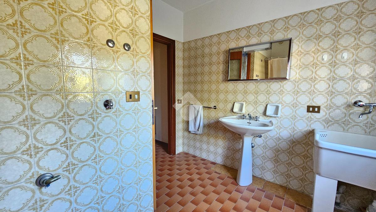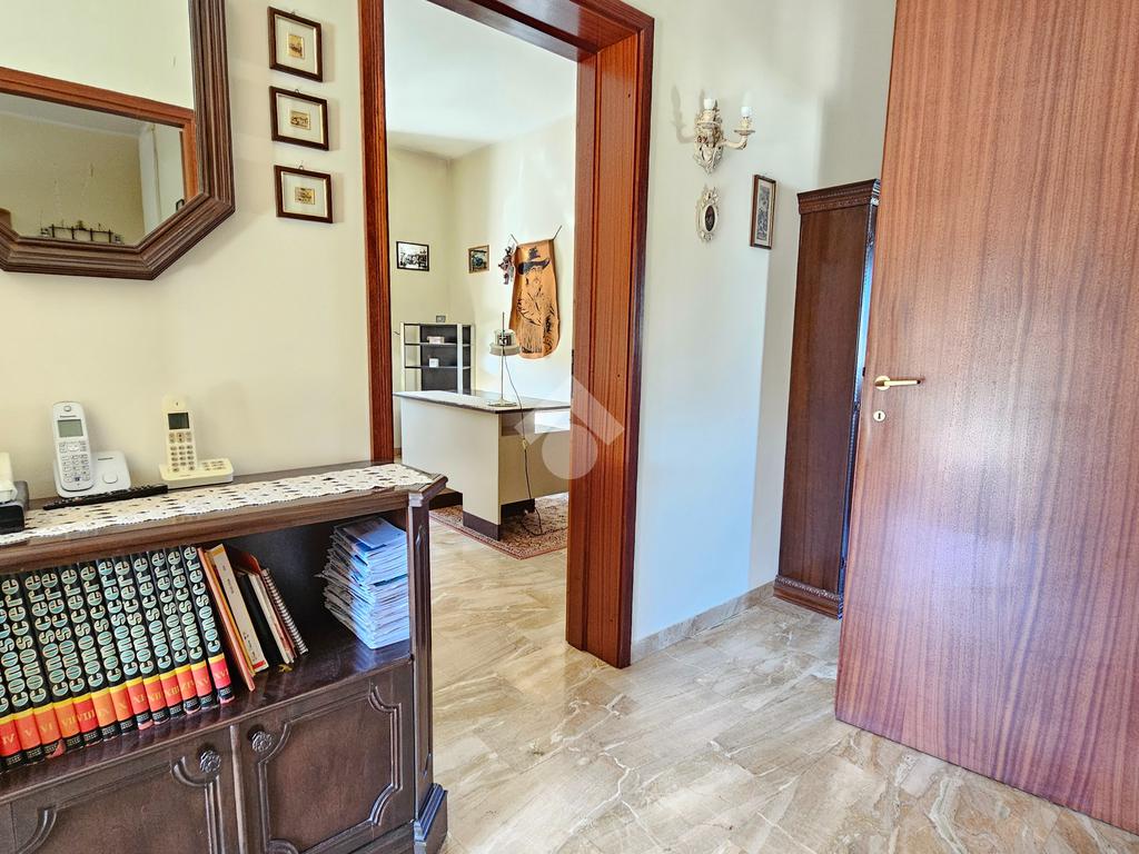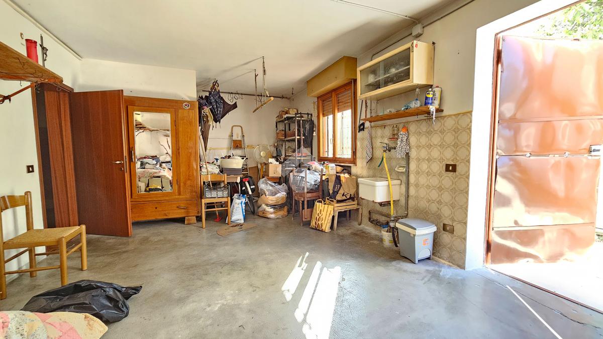 L’ingresso luminoso che conduce ad un disimpegno in cui sui sviluppano vari ambienti con zona cantina, bagno, stenditoio e ripostiglio. L'attuale composizione permette abilmente di destinare questa zona ad appartamento vero e proprio,indipendente.