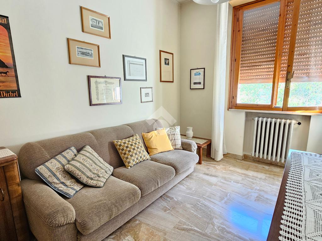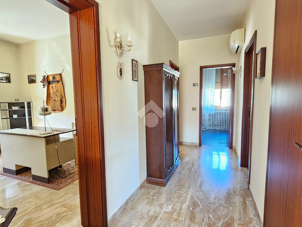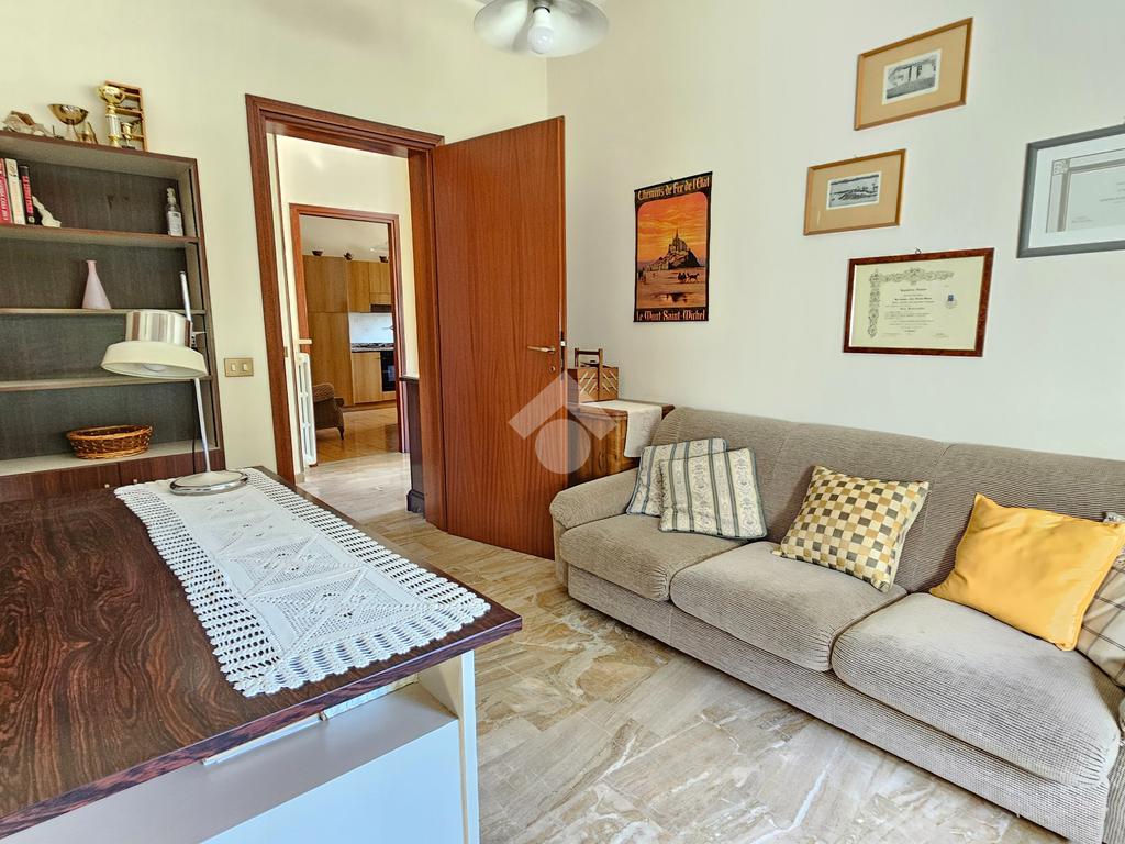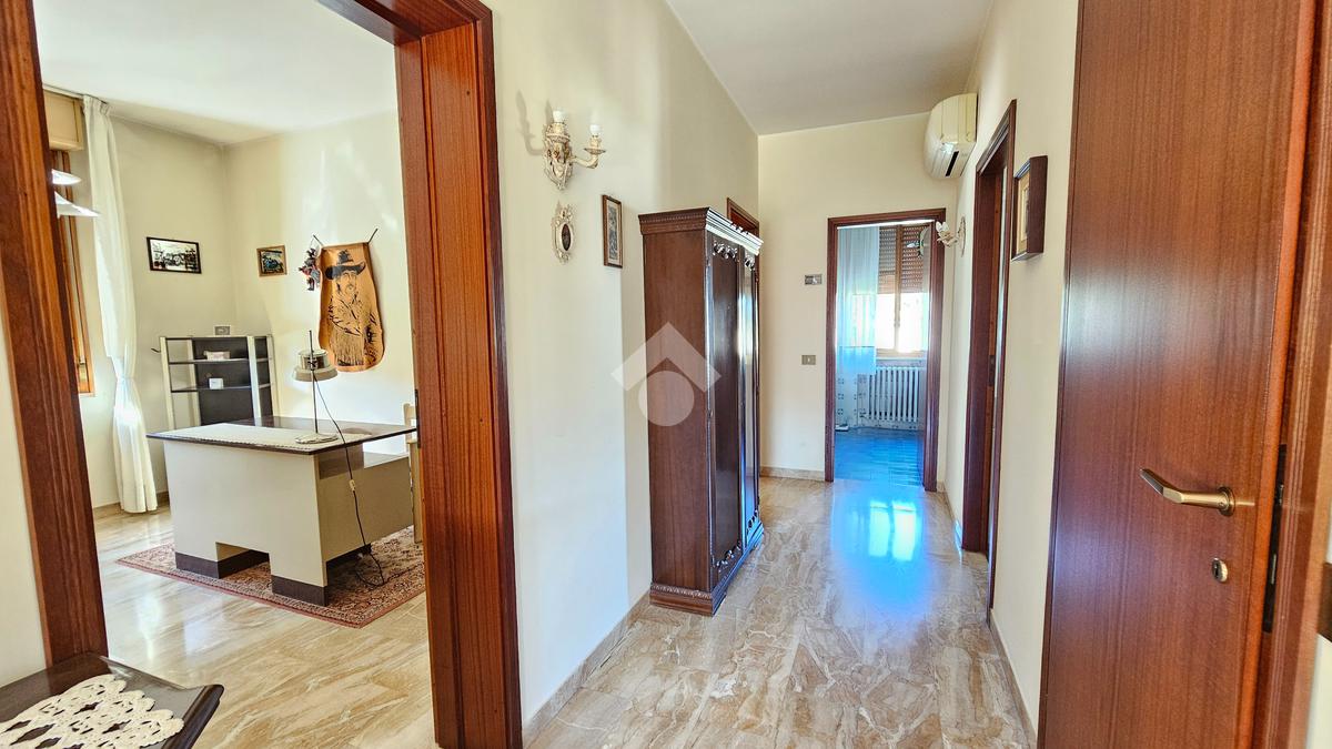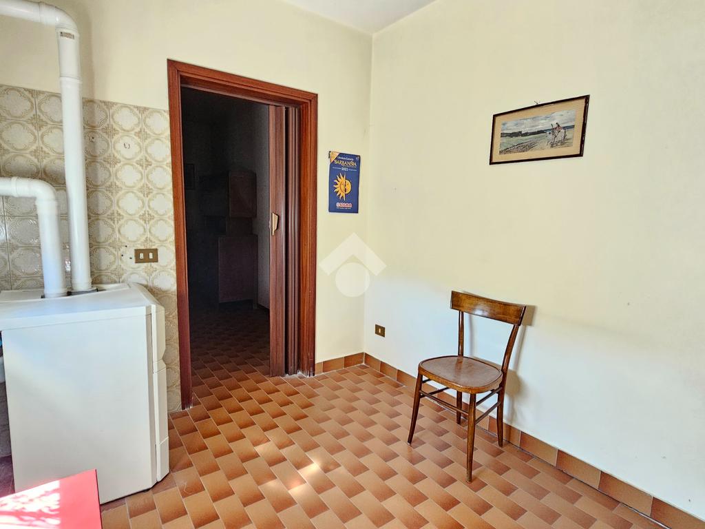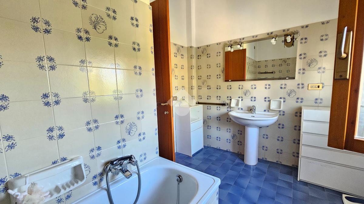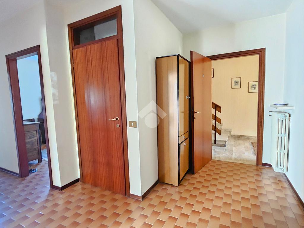 L’ingresso luminoso che conduce ad un disimpegno in cui sui sviluppano vari ambienti con zona cantina, bagno, stenditoio e ripostiglio. L'attuale composizione permette abilmente di destinare questa zona ad appartamento vero e proprio,indipendente.