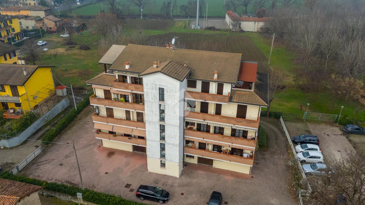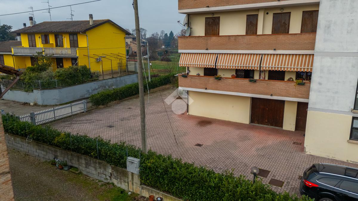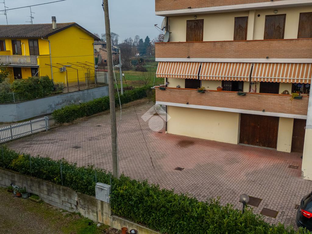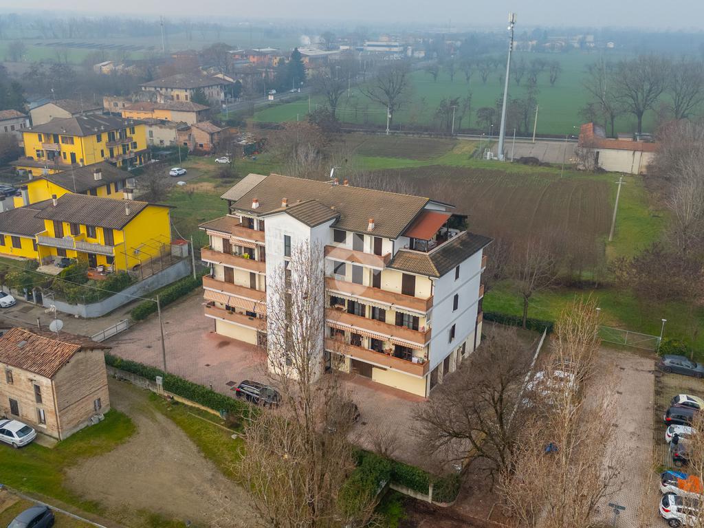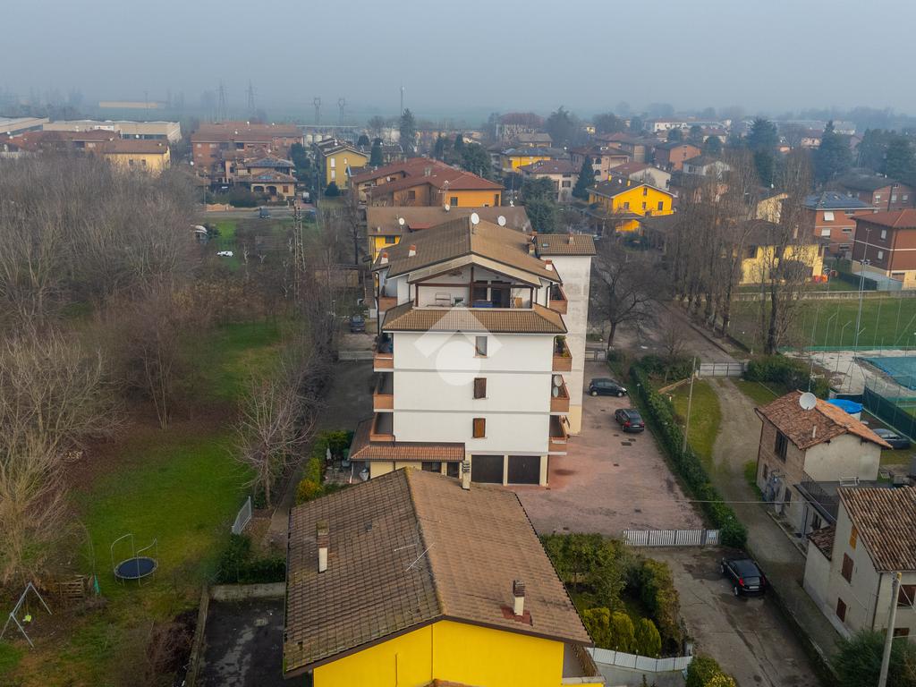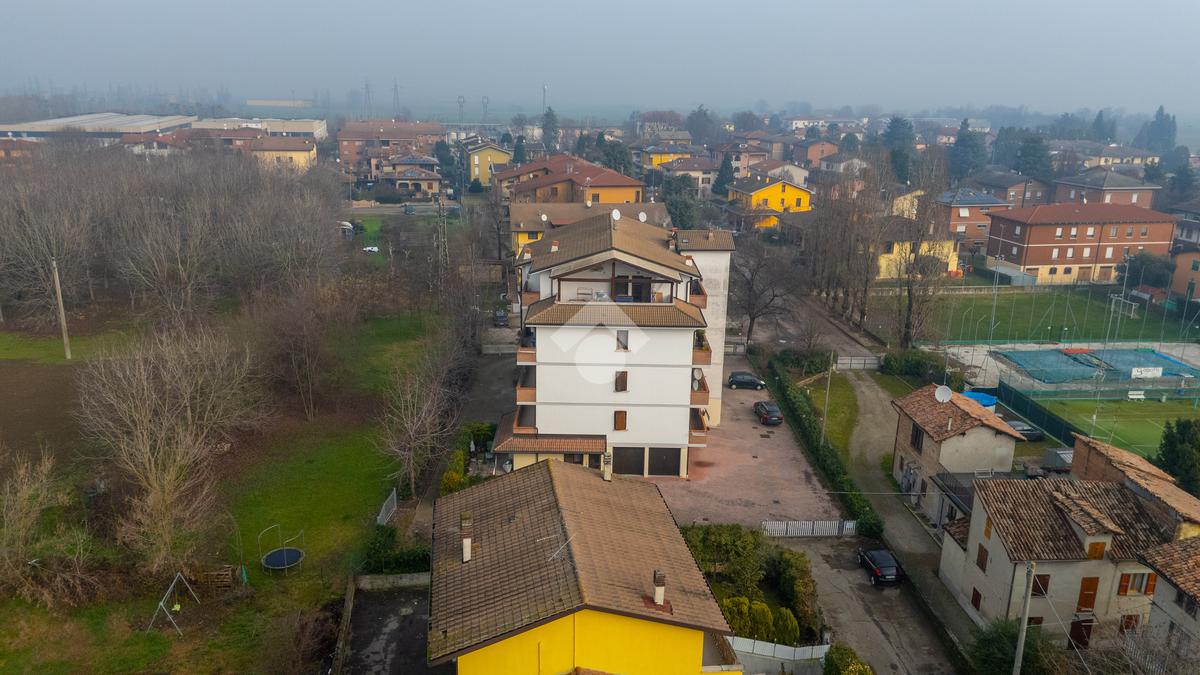 La palazzina è recintata e gode di un ampio parcheggio pubblico subito antistante ad essa. Comoda la posizione per chi cerca una soluzione fuori il centro città ma a pochi minuti da essa, sia che sia Rggio o Parma e l'accesso al casello autostradale.