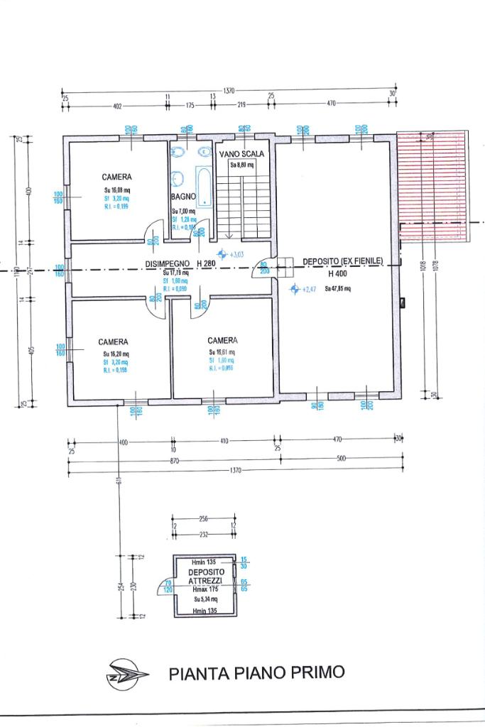 Il piano superiore ospita la zona notte, composta da tre spaziose camere da letto e un bagno a servizio del piano, oltre a un utile locale deposito interno.