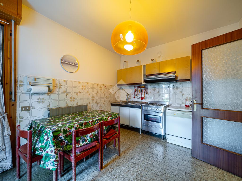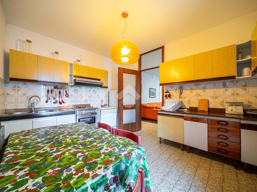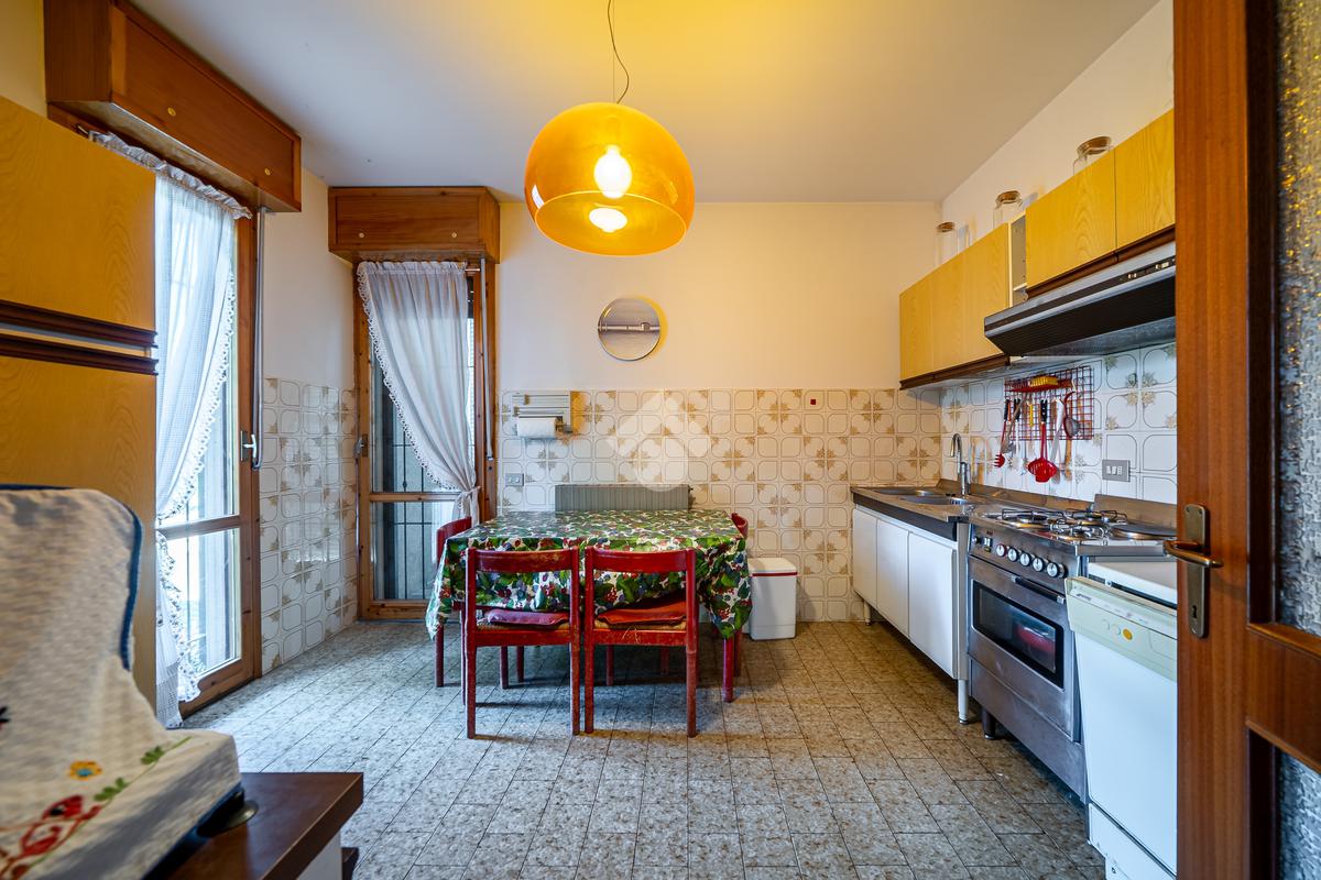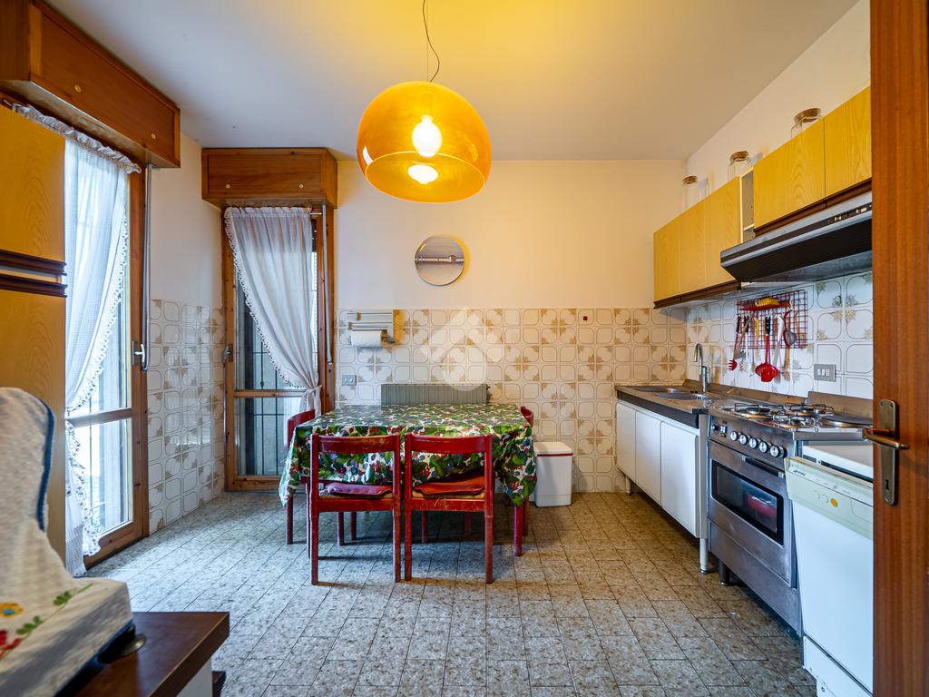 L’ingresso conduce a un soggiorno accogliente e di ottima metratura, dotato di tapparella elettrica e con affaccio sul balcone. La cucina, pratica e ben distribuita, dispone di un secondo balcone, garantendo areazione e luminosità.