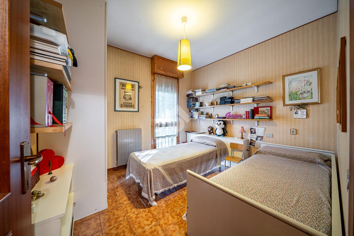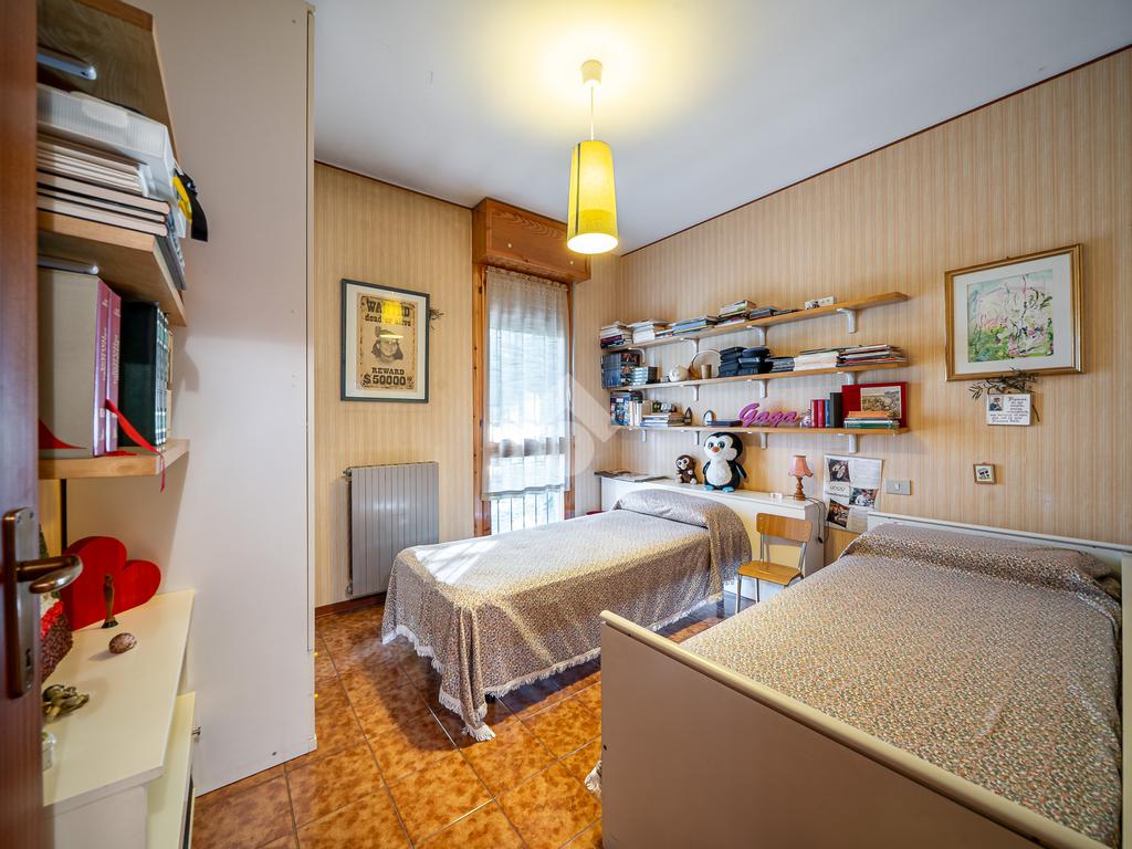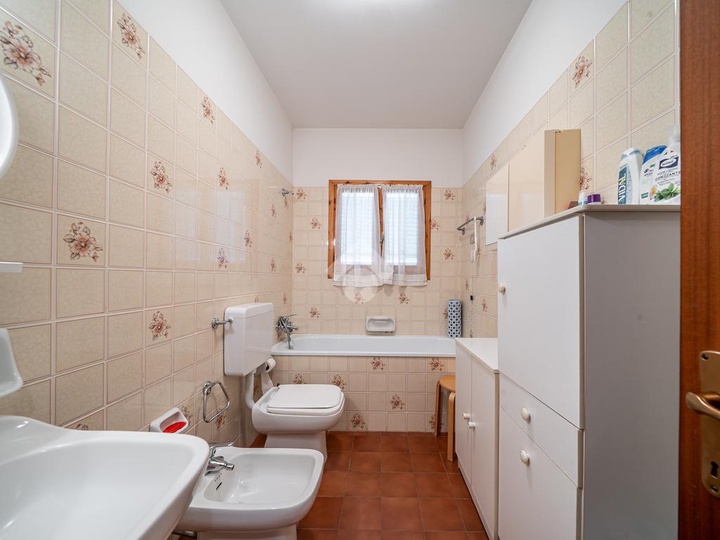 La zona notte è raggiungibile tramite disimpegno ed è composta da due camere matrimoniali—una delle quali con tapparella elettrica—una camera singola e un bagno finestrato con vasca.